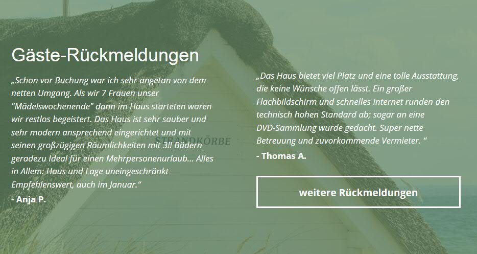 Die beiden großen, familienfreundlichen "Ferienhaus Timmendorf" und "Ferienhaus Scharbeutz" befinden sich nahe dem weißen Ostseestrand zwischen Scharbeutz und Timmendorfer Strand an der Lübecker Bucht. Bei uns seid Ihr richtig, wenn Ihr ein strandnahes und komfortables Ferienhaus oder eine große Ferienwohnung in Scharbeutz oder nahe Timmendorfer Strand suchen. Aus eigener Erfahrung wissen wir, wie schwer es ist, ein passendes Ferienhaus mit ausreichend Platz für eine große Familie oder eine Gruppe zu finden. Wir können Euch zwei Ferienhäuser mit je drei Bädern und acht bzw. neun Betten in vier bzw. fünf Schlafräumen bieten. Die Schlafräume haben jeweils maximal zwei Betten. So habt Ihr ausreichend Raum, Euch zurückzuziehen und auch nachts Eure Ruhe zu genießen. Zusätzlich können bei Bedarf gerne Kinderbetten zugestellt werden. Haustiere bleiben bitte zuhause.